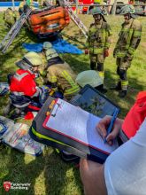 Am Samstagvormittag, den 24.05.2025 fand auf dem Gelände der Bundespolizei in Bamberg eine groß angelegte Einsatzübung statt. Durch die Bundespolizei und den Fachbereich 3 - Aus- und Fortbildung der Feuerwehr Bamberg wurde in enger Zusammenarbeit ein Szenario erarbeitet mit dem Ziel, parallele Einsatzmaßnahmen darzustellen und die Zusammenarbeit zwischen Feuerwehr und Rettungsdienst zu stärken.