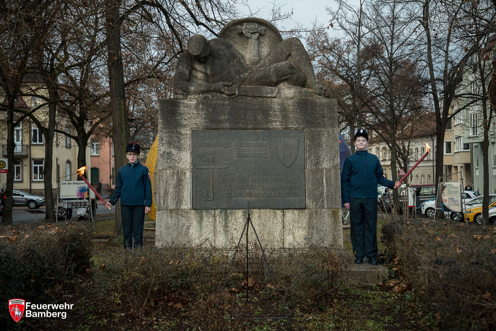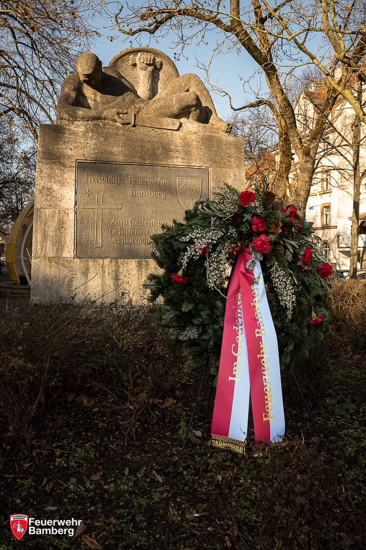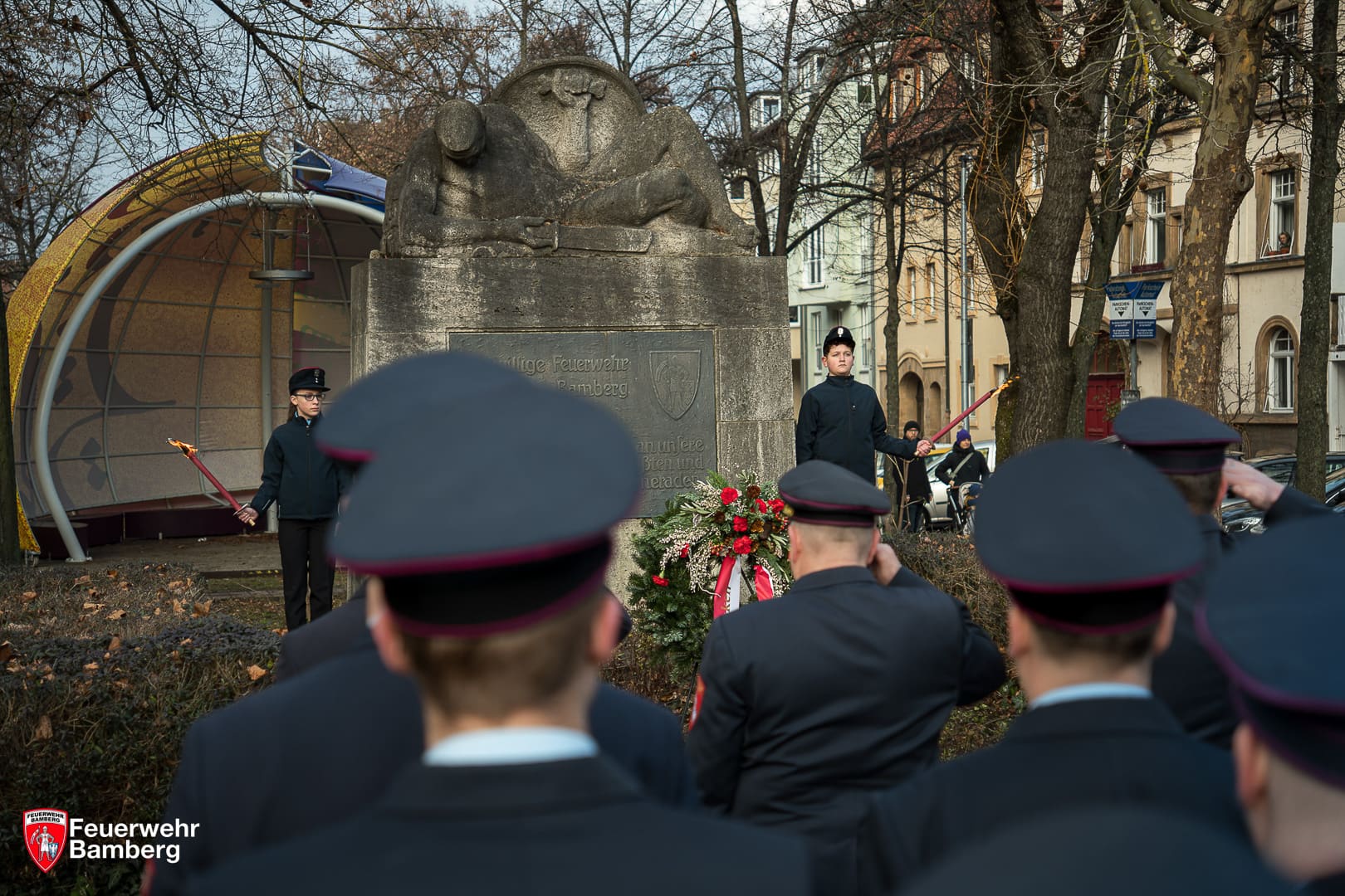 In würdigem Rahmen gedachten die Kameradinnen und Kameraden der Feuerwehr Bamberg am Ehrenmal am Markusplatz, wie er gemäß seinem Namensgeber richtig geschrieben wird, traditionell der vorangegangenen Generationen, die mit ihrem Engagement und Pflichtbewusstsein den Grundstein für die heutige Wehr gelegt haben. Würdig wurde der Rahmen insbesondere durch den musikalischen Beitrag des Blasmusikvereins Oberhaid. Das Gedenken ist fester Bestandteil unseres Selbstverständnisses und verbindet Vergangenheit, Gegenwart und Zukunft.
