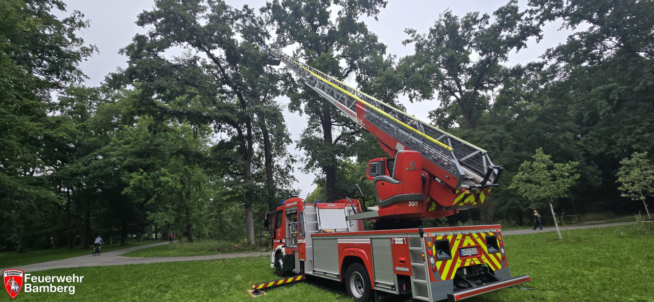 Am Sonntag wurde die Feuerwehr Bamberg zu einem Baum alarmiert, an dem kurz zuvor mehrere große Äste abgebrochen sind und Passanten nur knapp verfehlte.
