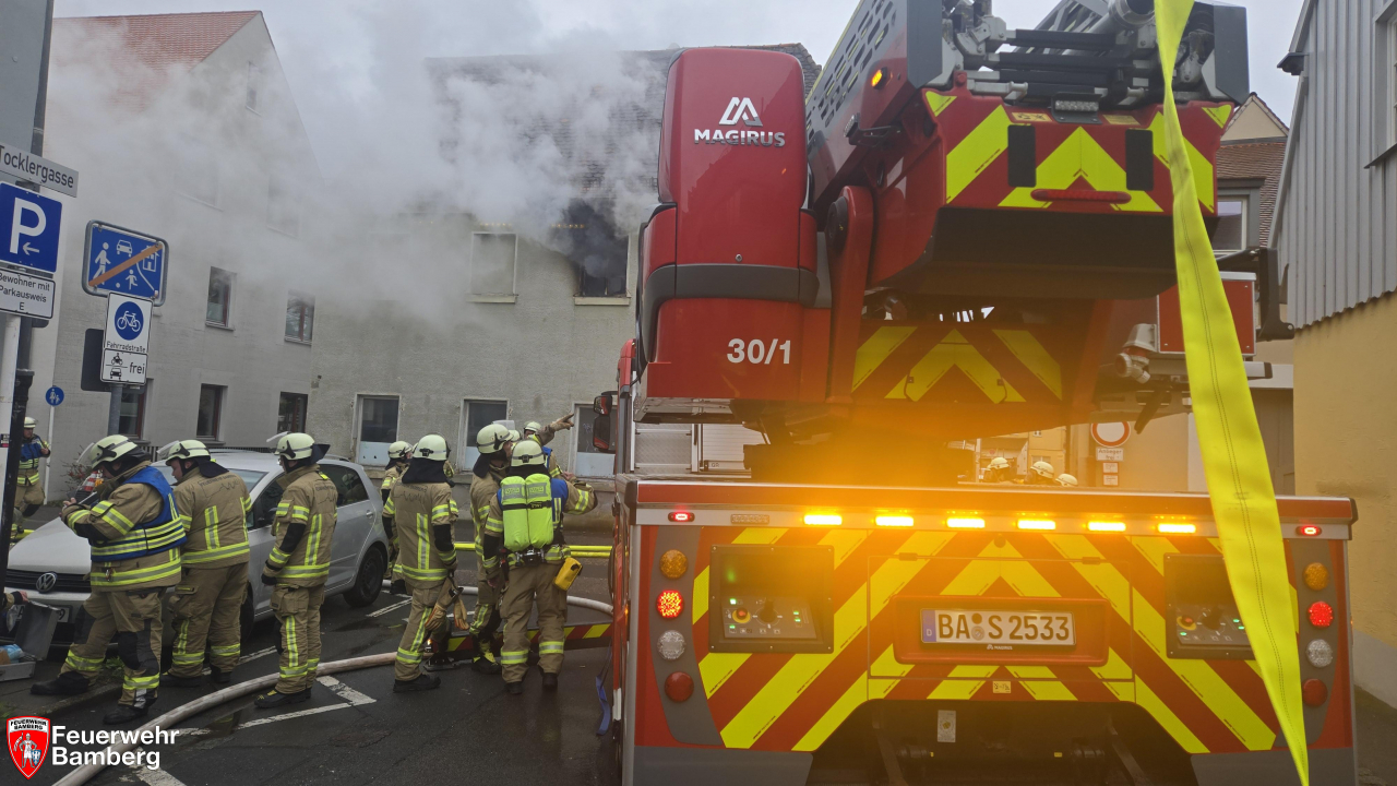 Am Vormittag wurde die Feuerwehr Bamberg ins Gärtnerviertel zu einem Dachstuhlbrand mit Personen in Gefahr alarmiert.
