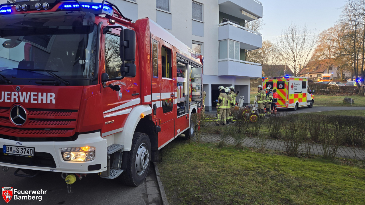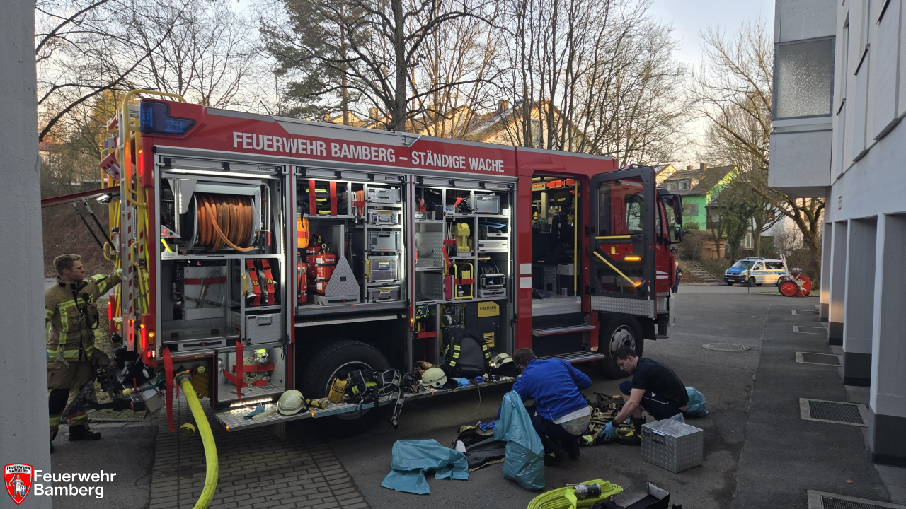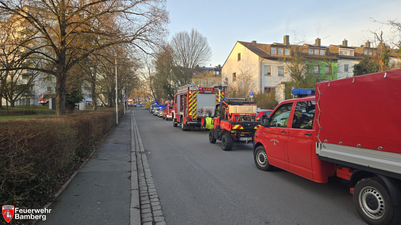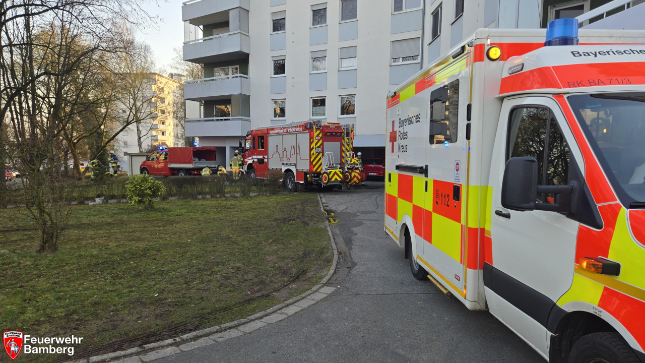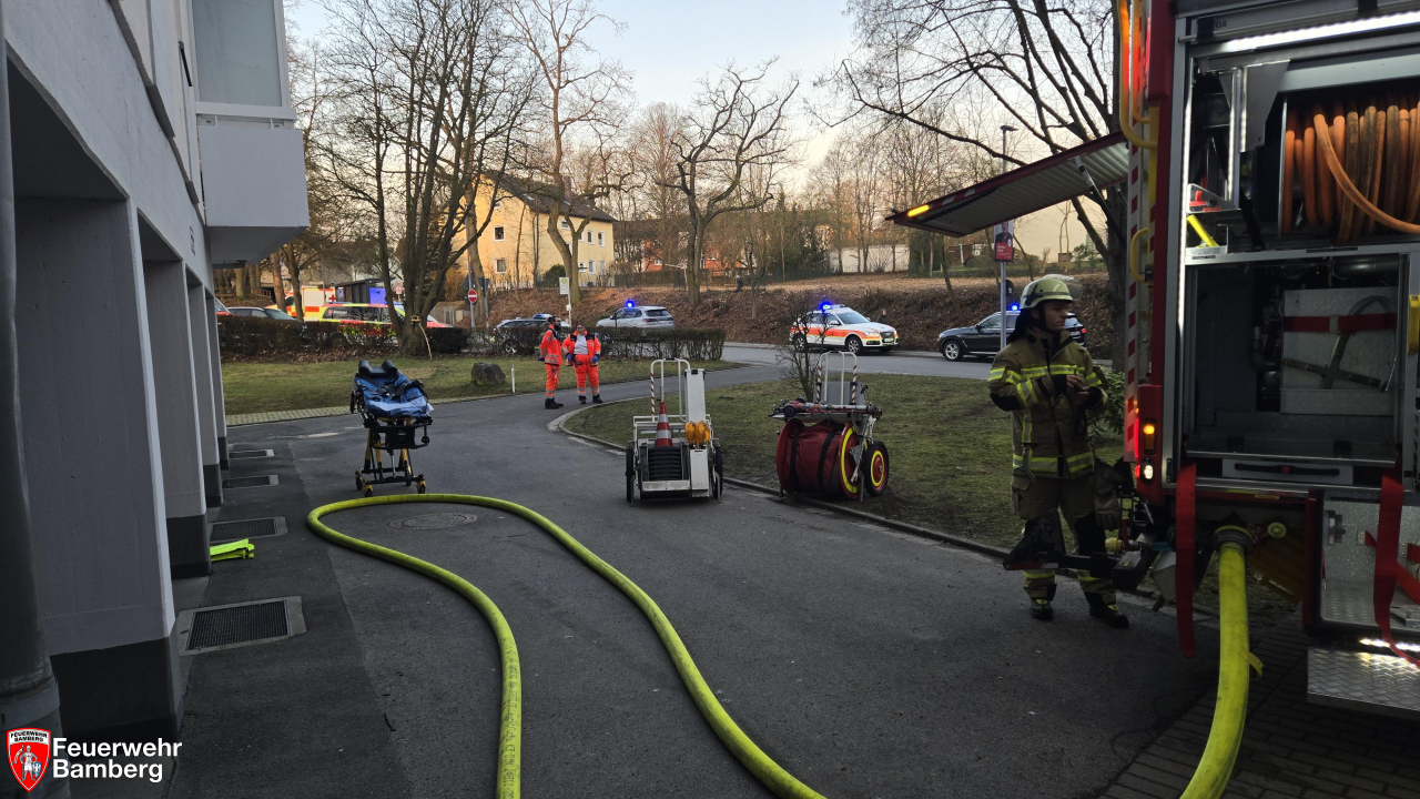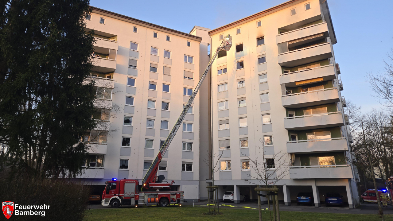 Die Feuerwehr Bamberg wurde in den Morgenstunden zu einem Zimmerbrand mit Personen in Gefahr alarmiert. Dazu rückten mehrere Löschzüge zu einem Hochhaus am Sylvanersee an. Im 7. Stock drang schwarzer Rauch aus einem Fenster.
