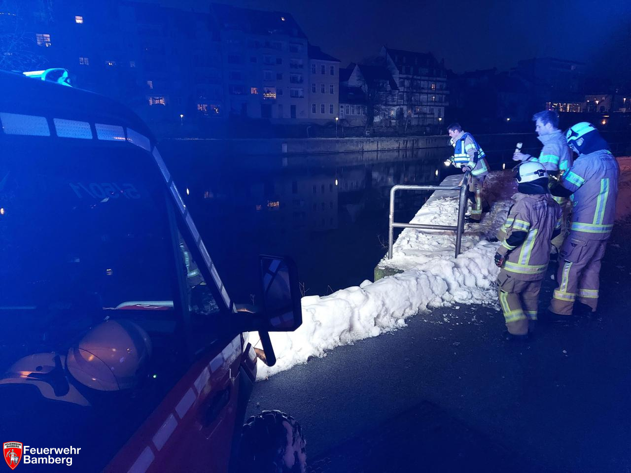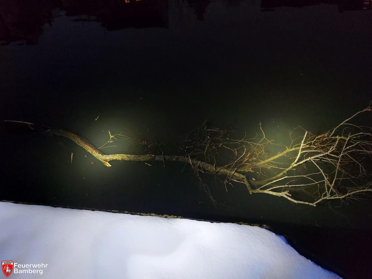 Am Nachmittag wurde die Feuerwehr Bamberg zum Main-Donau-Kanal alarmiert. Auf Höhe der Kettenbrücke sichtete ein Passant einen größeren Ast im Wasser.